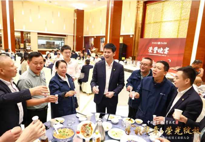 当晚,集团精心筹备了隆重的荣誉晚宴。晚宴上,集团领导与员工们亲切交流,气氛温馨热烈。大家共同举杯,品尝承载着匠心与文化底蕴的青花瓷美酒。在融洽的氛围中,团队的凝聚力得到进一步增强,品牌价值认同感也愈发深刻。