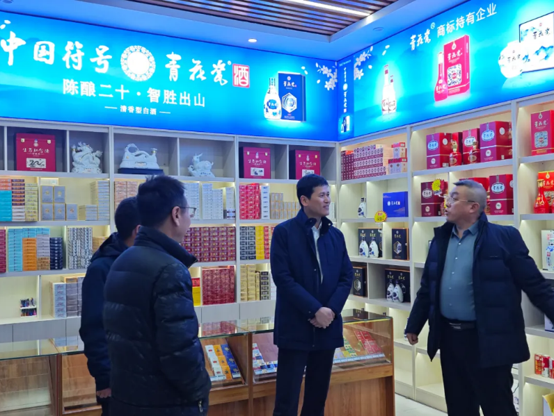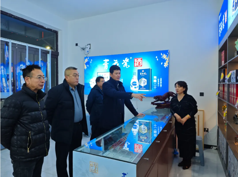 随后,调研团队一行前往应县,与应县经销商刘广涛一同深入应县核心商圈的终端网点,实地查看产品铺货率与品牌露出情况。在青花瓷酒应县专卖店内,朱明董事长仔细观摩了品牌文化展示区、产品陈列区的布局设计,强调专卖店是传递品牌理念、服务核心客户的重要窗口,要持续优化体验感,让消费者更直观地感受青花瓷酒的文化底蕴与品质魅力。