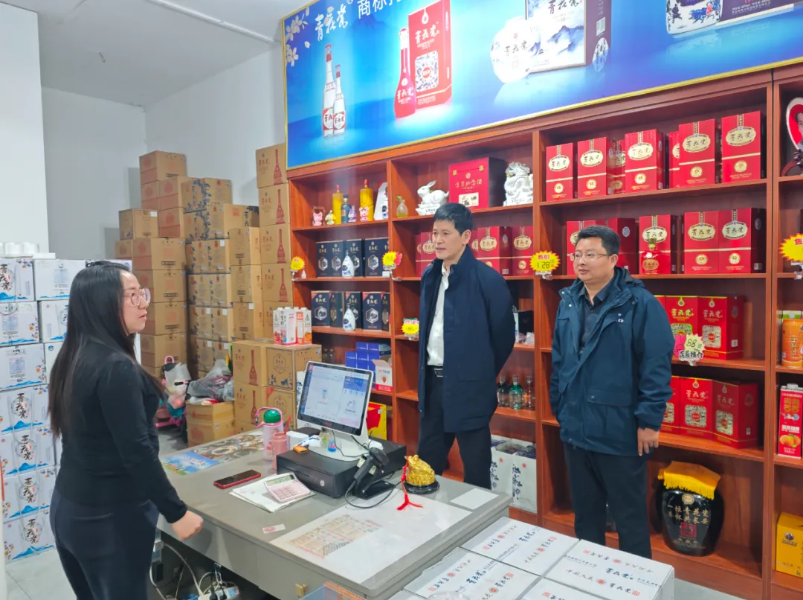随后,调研团队一行前往应县,与应县经销商刘广涛一同深入应县核心商圈的终端网点,实地查看产品铺货率与品牌露出情况。在青花瓷酒应县专卖店内,朱明董事长仔细观摩了品牌文化展示区、产品陈列区的布局设计,强调专卖店是传递品牌理念、服务核心客户的重要窗口,要持续优化体验感,让消费者更直观地感受青花瓷酒的文化底蕴与品质魅力。