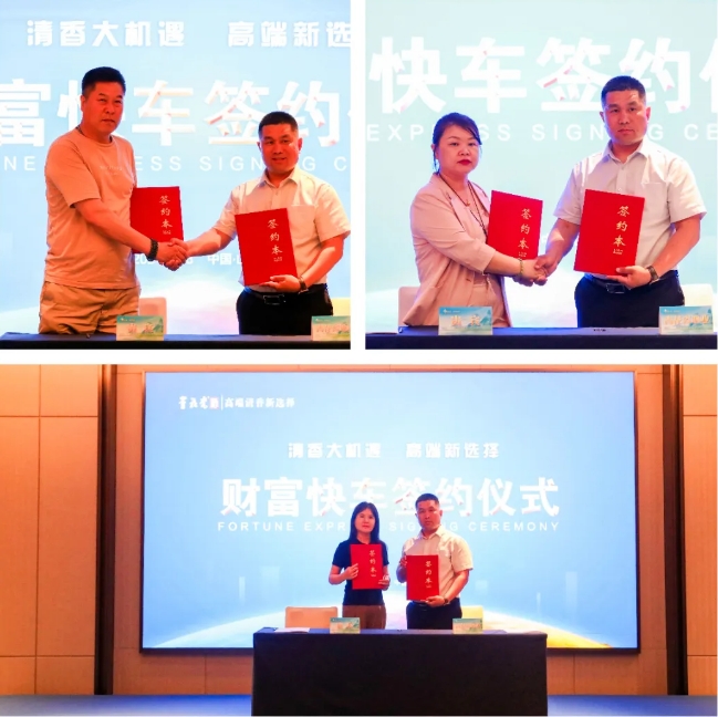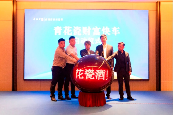 随后,多位嘉宾共同见证,青花瓷酒财富快车正式启动。