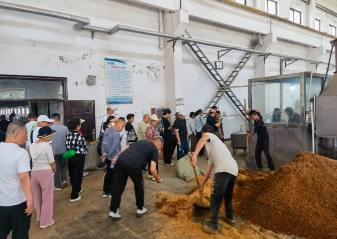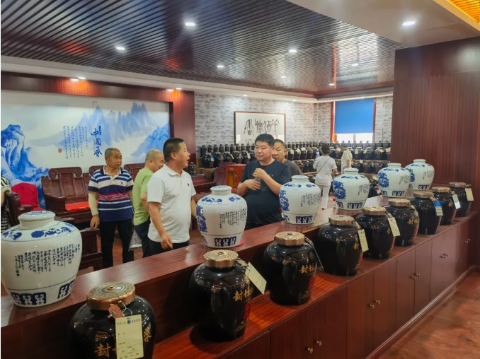 从踏入厂区的那一刻起,酒厂如同一幅幅生动的画卷展现在眼前,车间里弥漫着的浓郁酒香,工人们专注而熟练的操作,都彰显着青花瓷酒业对品质的执着追求。客户一行亲眼目睹粮食如何历经挑选、蒸煮、发酵、蒸馏等,最终化为醇香的白酒,对神秘的酿造过程有了更为深刻的理解和感悟。